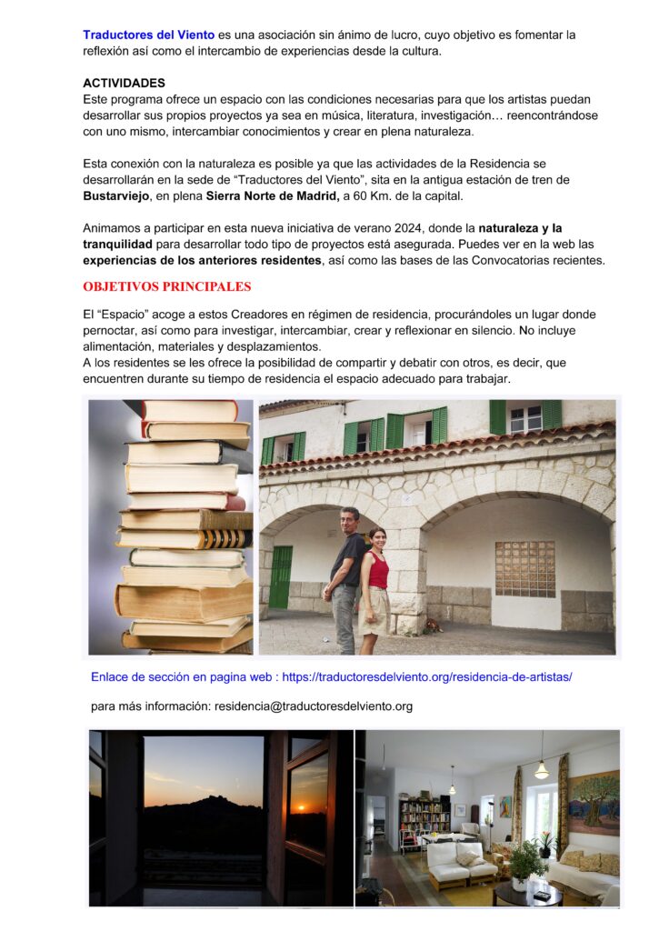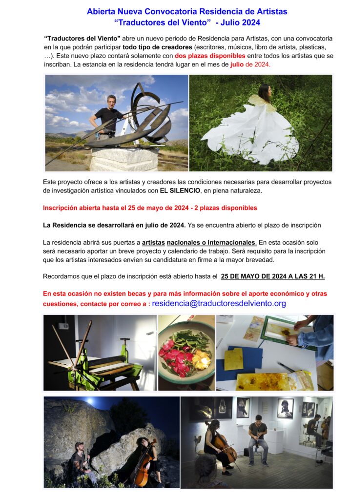 NUEVA CONVOCATORIA Residencia de Artistas JULIO 2024