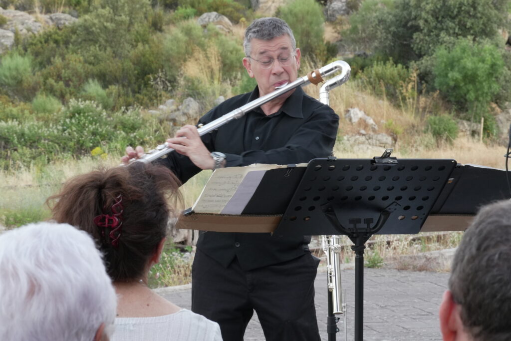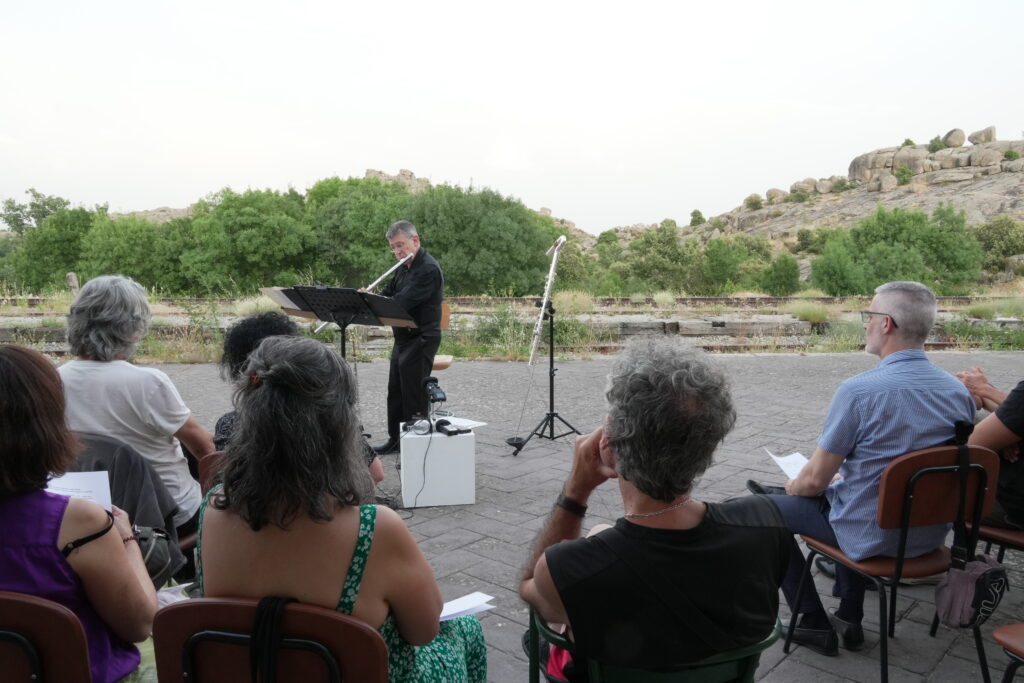 En Traductores del Viento, en el antiguo andén de la estación de tren de Bustarviejo, en un espacio al aire libre, al atardecer y acogidos por la naturaleza, tuvo lugar nuevamente -esta vez el 21 de JUNIO a las 21 h.– un extraordinario concierto de Antonio J.Berdonés para 4 flautas (flauta, Piccolo, flauta alto y flauta bajo).